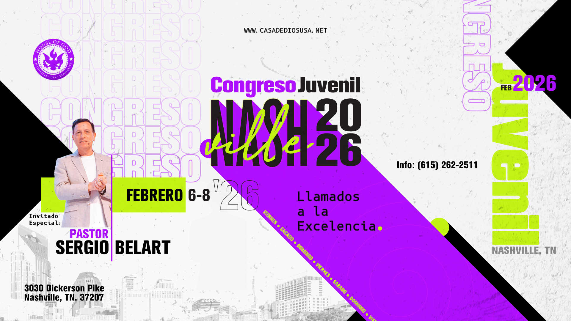 El Congreso Juvenil Nashville 2026 es un espacio diseñado para reunirnos como generación y vivir un tiempo profundo de adoración, enseñanza y crecimiento espiritual. Durante estos días, creemos que Dios traerá dirección, renovación y claridad para caminar con propósito, identidad y excelencia en cada área de nuestra vida.