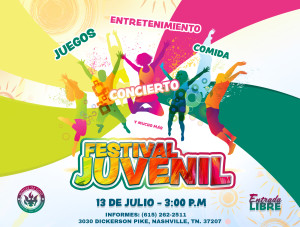 Festival Juvenil 2019 Se realizará a las 3:00 pm, en las instalaciones de tu iglesia Casa de Dios USA. 3030 Dickerson Pike, Nashville,TN. 37075 Tel. (615) 262-2511 www.casadediosusa.net